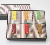 一つ一つにおもいをのせる「おもひばこ」は、一箱でもカワイイのですが、4個、6個の詰合せが出来る専用の化粧箱をご用意しており、抹茶くぐろふセットも人気です。これまたカワイイデザインが好評の紙帯で包装いたします。